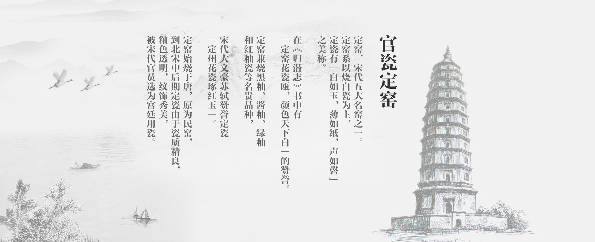 定州市官定瓷業(yè)有限公司,位于“定瓷文化發(fā)祥地”——定州,其前身是官瓷定窯文化交流中心,成立于2013年,官定瓷業(yè)是一家集定窯文化推廣,定瓷生產(chǎn)、科研的市級(jí)重點(diǎn)龍頭企業(yè),主要經(jīng)營(yíng)定瓷茶具、餐具,定瓷工藝品等。 官定瓷業(yè)秉承傳統(tǒng)燒制工藝?yán)砟?,深挖宋代“制瓷”技藝精髓,從器入道?lái)升華茶人精神境界,“器”只是個(gè)載體,通過(guò)器能給茶人帶來(lái)“正、清、和、雅”的禪意生活。 我們本著誠(chéng)信做人,踏實(shí)做事的查看詳情